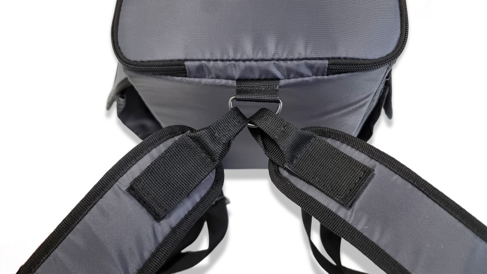 - В отличии от сумки RFT-DM новая сумка снабжена съемными лямками и может быть использована как рюкзак, при этом перекидной плечевой ремень также входит в комплект. Съемный ремень для переноски сделан специально широким (40 мм) с мягкой плечевой накладкой (ткань и пенка), крепится карабинами на вшитые кольца. Длина ремня рассчитана на ношение сумки как на плече, так и через плечо