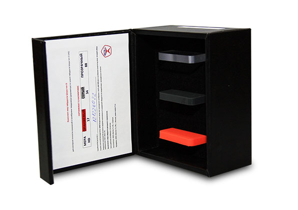 Комплект мер твёрдости Шора тип D (3 шт. HD) – набор из 3-х тестовых образцов из резины и пластмасс для воспроизведения ряда значений твёрдости в единицах Шора тип D по ГОСТ 24621-91 (ISO 868-85) и ГОСТ Р ИСО 7619-1-2009
