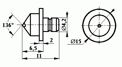 Наконечники алмазные в виде четырёхгранной пирамиды с углом 136° к приборам для измерения микротвёрдости металлов и сплавов по методу Виккерса. Изготовлен в соответствии с ГОСТ 9377-81 и прошли первичную поверку при выпуске из производства по ГОСТ 8.044-80. Алмаз монокристаллический синтетический марки Va (ТУ 47-12-88). Геометрические размеры по ГОСТ 9377-81, исполнение НПМ. Наконечник алмазный НПМ с рабочей частью в виде четырёхгранной пирамиды для измерения микротвёрдости.
