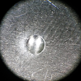Твердомер Польди-Хютте предназначен для измерения твёрдости металлов по Бринеллю методом двойного ударного отпечатка шарика в соответствии с ГОСТ 18661 – 73. При ударе молотка по верхней части твердомера стальной шарик диаметром 10 мм вдавливается одновременно в контролируемую деталь и эталонный брусок (меру твёрдости), образуя при вдавливании отпечатки на обоих изделиях. После этого с помощью микроскопа производится измерение диаметров отпечатков (лунок) и твёрдость детали по Бринеллю определяется с помощью прилагаемых таблиц.
