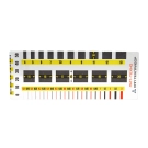 Шаблон выполнен из прозрачного гибкого пластика с габаритными размерами: 160х60х2мм. Имеет 4 сектора для измерения.