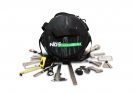 все предметы комплектации размещены в карманах по кругу внутренней поверхности, каждый из карманов снабжен резиновой манжетой и закрывается клапаном на липучке.