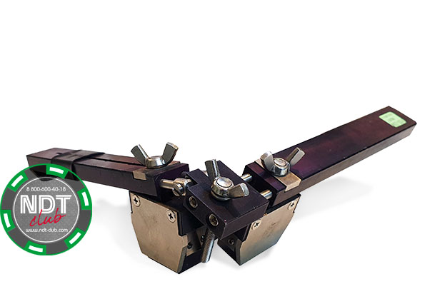 Устройство предназначено для УЗК перекрестий (пересечений) сварных швов или обнаружения поперечно-ориентированных дефектов в стыковом сварном соединении. Устройство состоит из двух ультразвуковых преобразователей П121 — 5 — 70° и механического приспособления, имеющего две направляющие и стопорный винт. В устройстве реализованы схемы УЗК: симметричный и асимметричный «Дуэт».
