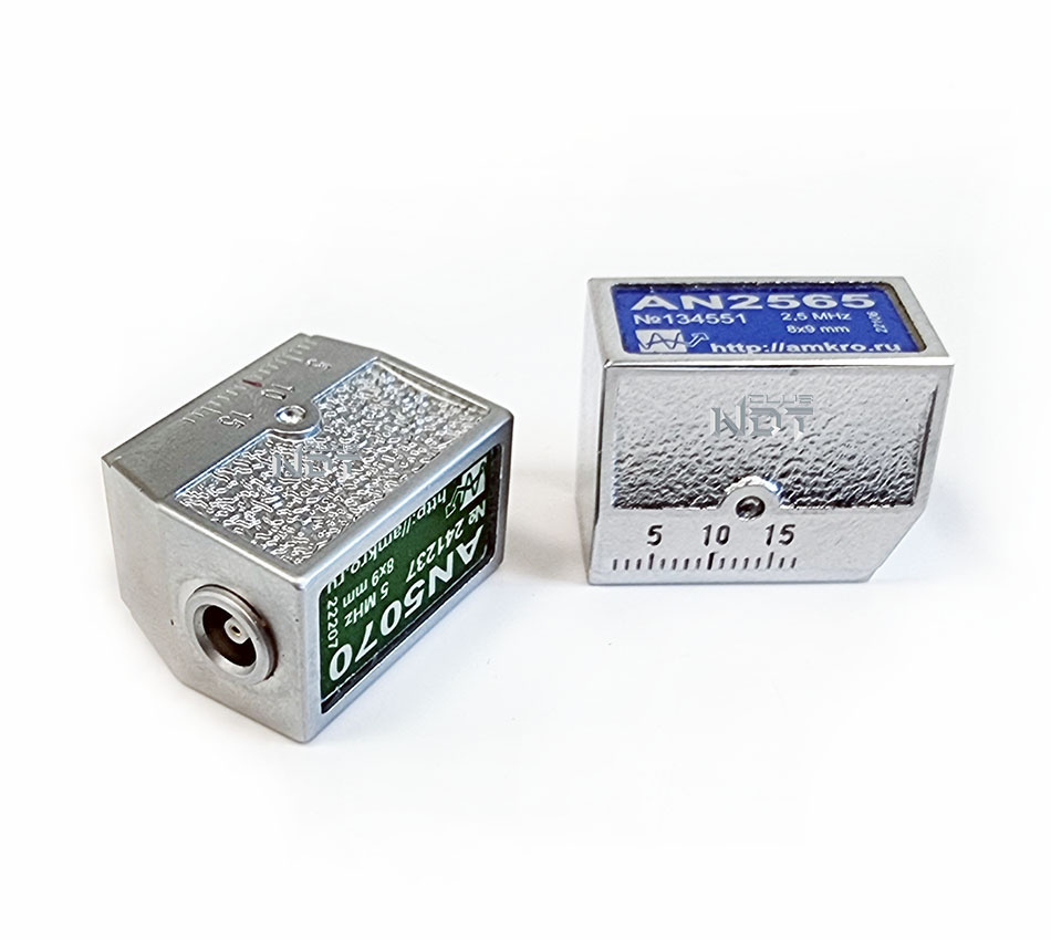 AN18xx | AN25xx | AN50xx: наклонные УЗ ПЭП c поперечной волной и горизонтальным расположением разъема служат для ультразвукового контроля (УЗК) изделий и сварных соединений из металлов.
