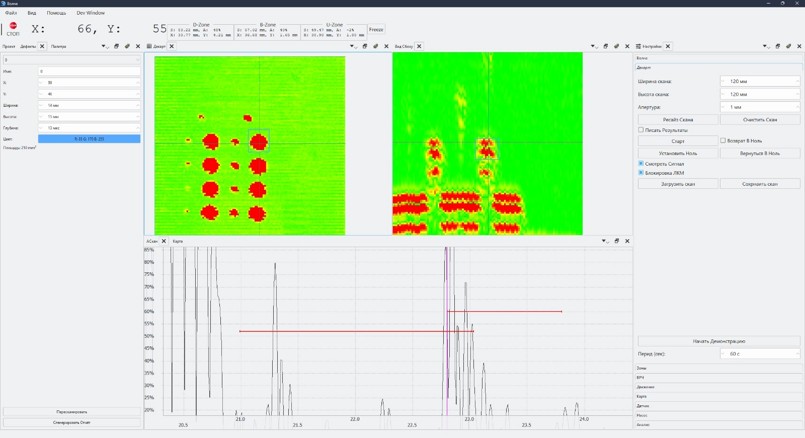 DECARD-2D моторизированный XY сканер для неразрушающего контроля больших поверхностей, позволяя, в зависимости от применяемых преобразователей и дефектоскопов использовать акустический импедансный, ультразвуковой, резонансный, вихретоковый и другие методы контроля. Сканер представляет максимум удобства и гибкости при решении различных задач. Управление приводами и подачей жидкости (при необходимости) осуществляется с помощью станции Kropus Aquadrive.