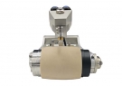 Уникальный эластичный материал шины ролика сканера специально разработан для обеспечения высокого качества ультразвукового контроля, не уступающего иммерсионному. Материал ролика имеет скорость УЗК и акустический импеданс сходные с водой, благодаря чему удается избежать отражений от стенки ролика. Достаточно минимального количества жидкости и небольшого давления на преобразователь для получения качественного акустического контакта и четкого сигнала даже в сложных позициях сканирования.