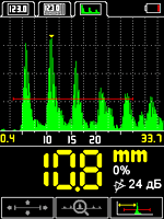 Ультразвуковой толщиномер А1210 с функцией А-скан применяется для измерения толщины изделий из металла и пластика при одностороннем доступе. Функция А-скан необходима при проведении толщинометрии полиэтиленовых труб ПЭ80/ПЭ100 как в эксплуатации, так и в процессе экструзии при изготовлении на заводе - измерения в режиме А-скан позволяет исключить ложные срабатывания особенно при работе по горячему полиэтилену. Также функция А-скан позволяет проводить измерения через покрытие.