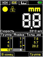 ПАМЯТЬ – режим предназначен для оперативного определения толщины изделия с возможностью записи результатов в память прибора. Результаты контроля возможно распределять по группам, оперативно просматривать и корректировать запомненные данные