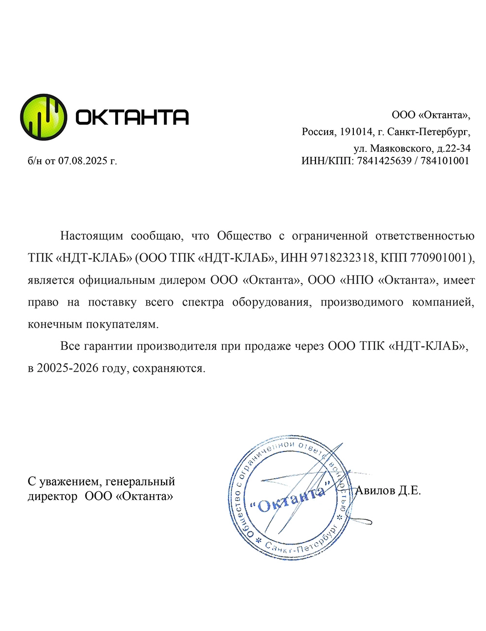 Компания Октанта была основана в 2010 году как предприятие по разработке прецизионных измерительных приборов и оборудования для бесконтактного неразрушающего контроля. Совместная работа специалистов компании Октанта и научных сотрудников Санкт-Петербургского Государственного Политехнического Университета позволила совершить научный прорыв в технологии бесконтактного возбуждения ультразвуковых волн при помощи Электромагнитно-Акустического преобразования (ЭМАП). Благодаря этому компания Октанта обладает одной из лучших в мире реализаций технологии ЭМАП. Данная технология позволяет производить толщинометрию и дефектоскопию металлических объектов контроля (контроль сварных соединений, поиск трещин, язв, расслоений, отслоений изоляции и многое другое) без применения контактной жидкости и предварительной зачистки поверхности